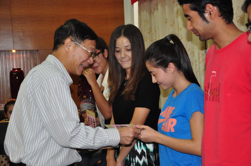 随后,陈建平对参加座谈会的新疆学子逐一慰问,为他们发放慰问金,对大家表示节日的祝福。