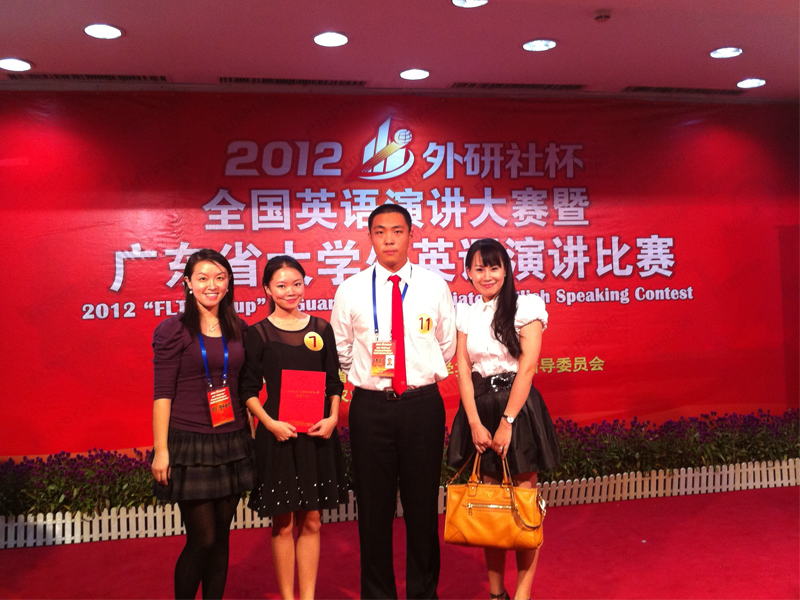 本网讯 10月28日,2012年“外研社杯”全国英语演讲比赛暨广东省大学生英语演讲比赛在仲恺农业工程学院隆重举行。我校商英学院何胡俊、政管学院张瑶分别荣获特等奖和一等奖。