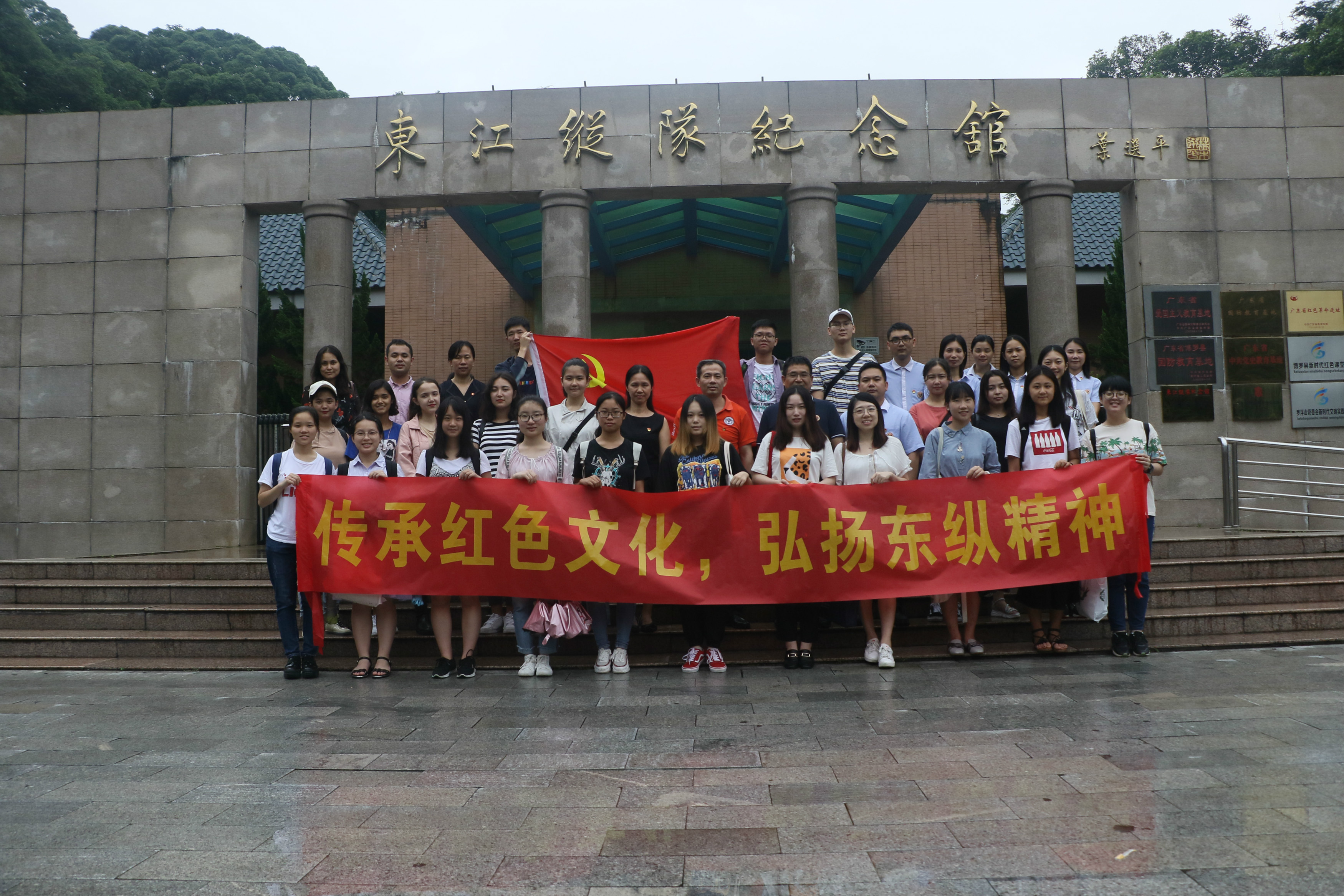 本网讯 5月30日,我校英语教育学院党委联合大学生实践教育基地东江广雅学校教师党支部赴博罗县东江纵队纪念馆开展“传承红色文化、弘扬东纵精神”主题党日活动,并共同举办“不忘立德树人之心、牢记教书育人使命”主题交流会。英语教育学院党员教师代表和学院学生党员、学生骨干及少数民族预科班入党积极分子,东江广雅学校总监何智、副校长龚克、副校长李纯等参加活动。