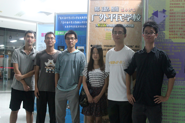 “广外平民学校研究团队”共有六名成员:刘卓麟、罗俊昕、林滨、司徒宇飞、周加郑和林漾,他们都来自经贸学院,除司徒宇飞外,其他五名是我校2011年‘经世者’经济学专业技能挑战赛冠军团队的原班人马。团队成立之初,他们都还只是大一或大二的学生,没有“办校”经验,时间和精力也很有限,支撑他们反复修改项目申请书,不断探访调查校工友意愿,长期熬夜工作,忍着脾气,耐心跟有关人员“磨嘴皮子”的只有那颗“做好这份公益”的赤子之心和强大的团队精神。