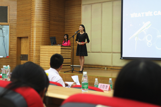 本网讯 10月11日下午,2012年我校英文演讲比赛在北校图书馆负一层举行。来自各个学院的英语演讲强手就论题展开了精彩演讲。最终,来自政管学院的张瑶脱颖而出,夺得冠军。