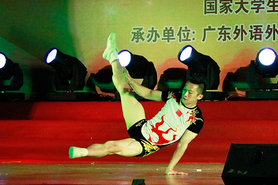当国魅拉拉队遇见世界冠军黎良发,共同演绎啦啦操《Celebration》时,观众们“暴动”了。啦啦队队员们的帅气动作和体操的高难度动作让这次的啦啦操更吸引人。每当黎良发在空中翻滚一次,旋转一次,新生们就尖叫一次。配合着节奏的强弱,不论是劈叉还是跳跃,每个动作都精准无比。