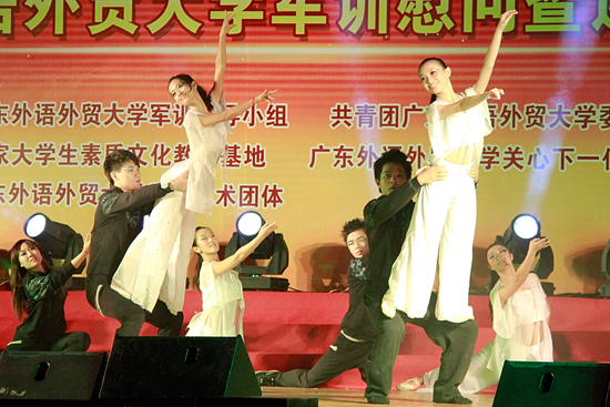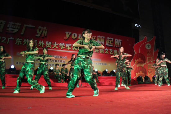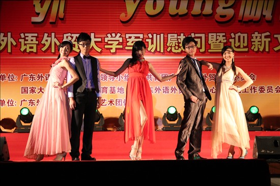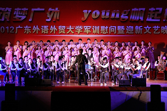 本网讯 9月25日、27日晚,由共青团广东外语外贸大学委员会和关心下一代工作委员会主办,学生艺术团体承办的2012军训慰问暨迎新晚会“筑梦广外,young帆起航”分别在南北校隆重举行。