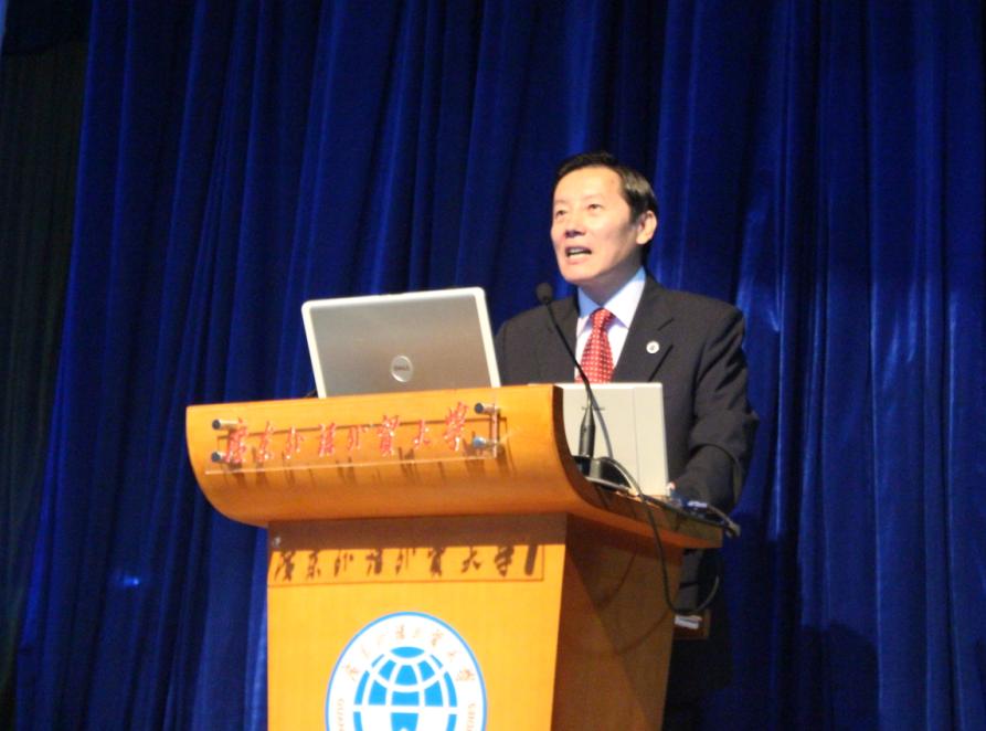 本网讯 9月20日下午两点半,商英学院2013届毕业生就业动员大会暨国际商务礼仪专题培训在六教报告厅举行。我校副校长方凡泉担任主讲嘉宾,为商英学院毕业班及创新班学生讲授国际商务礼仪知识。
