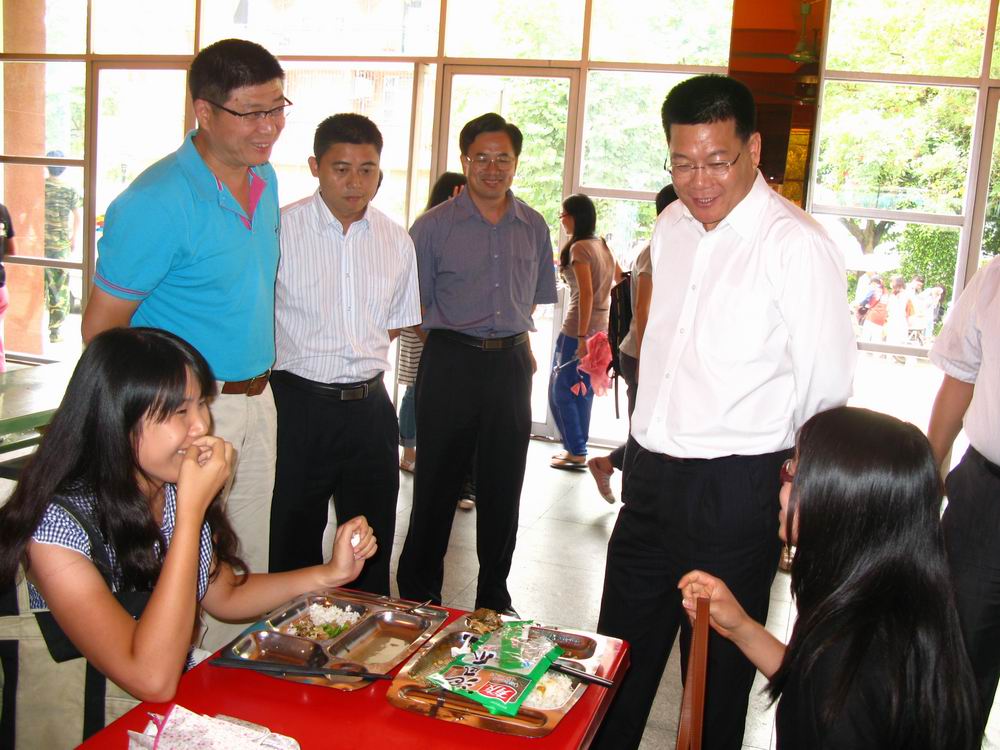 仲伟合与就餐学生亲切交谈