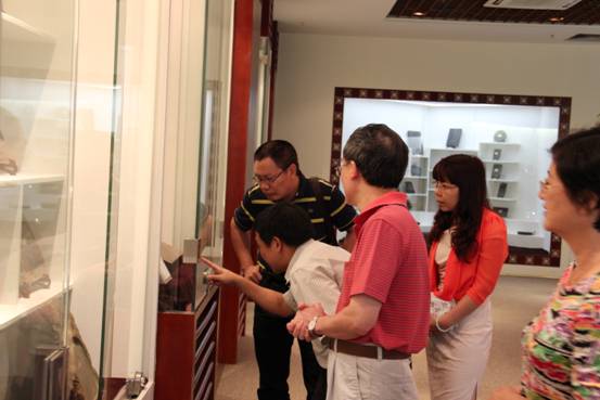 专家们饶有兴致地参观了陈列室的各个展区,时而端详藏品,时而展开讨论。特别是在古籍展区与砚台展区,专家们驻足良久,仔细探寻藏品的时代内涵与文化价值。在参观过程中,专家们对我校程贤章收藏陈列室给予了充分的肯定。倪馆长认为陈列室作为一项文化工程,体现了大学的文化传承与文化担当。林站长表示陈列室的藏品种类丰富、能展现不同时代的文化内涵,陈列室的布置也别具特色,能使参观者更好地接受文化熏陶。专家们都一致表示我校程贤章收藏陈列室作为一处传承人文精神、传播文化价值的场所,其规模和内容在同类学校的文化设施中是比较突出的。