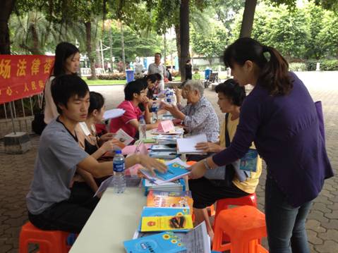 前来咨询的市民主要来自周边社区,由于法律知识浅薄,咨询的问题也各式各样。如一位清洁工阿姨咨询离婚案件,由于诉讼时效已过陷入僵局,法援志愿者尽力提出其他的非法律意见帮助她;民工大叔咨询的是工伤案件,由于案件缺乏证据难以胜诉,法援志愿者出谋划策让大叔寻求相关部门帮助。志愿者们以专业的态度帮助主办方完成了普法活动,帮助有需要的群众们解决法律上的困惑。