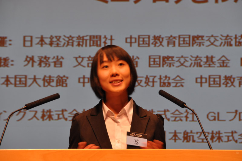 本次大赛分为命题演讲和即兴演讲两部分。命题演讲的内容包括“微博与我”和“中日的纽带——异文化交流”。云青就“微博与我”这一主题,结合自身体验,讲述了微博的利弊,提出了“人生不是微博上短短的140字可以写尽的,应该要返回人生的原点”的独特观点。她呼吁大家在信息泛滥的今天要保持清醒头脑,并通过多种方式来审视内心并保持内心的清醒。当被评委问到“你在日记里会如何记录对日本的印象?”时,云青说自己来到日本不能用手机反而可以像昔日的诗人那样一边欣赏美景,一边用文字记录生活,获得了在远离信息生活后的宁静。这般富有诗意的回答获得了评委们的赞赏。