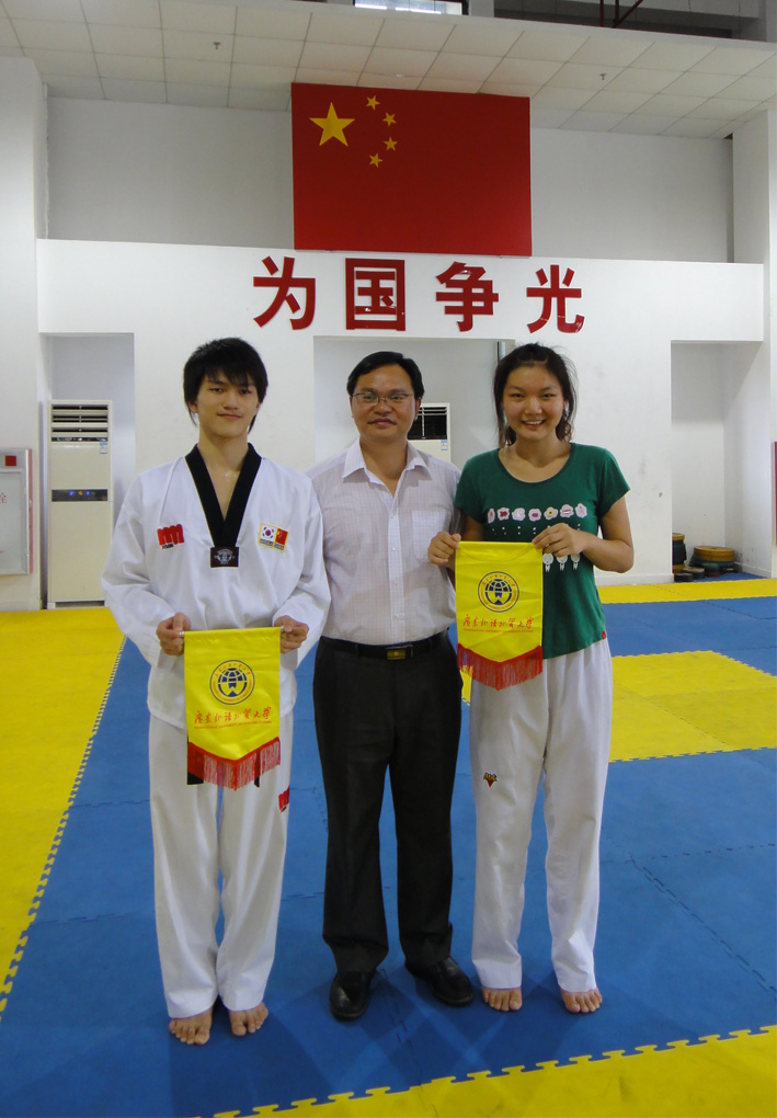 据悉,广东省大学生跆拳道队从3月开始集训,最后选派出10男、10女共20名队员参加17个项目的角逐。其中,两名队员来自我校,分别是思科信息学院2010级的黄婷和经贸学院2010级的吴晓东。同时,我校跆拳道老师余中也作为教练组成员一同备战。