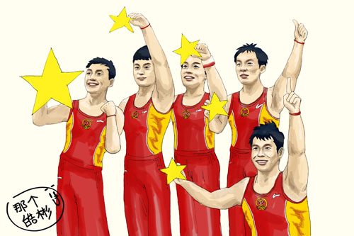 “中国体操男团集体卖萌的时候,真是让人完全hold不住了!”一位网友在微博上大呼。那是在陈一冰队长带领下由五人组成的中国体操男团于夺冠后的场景。他们每人拿着一颗星星,一起拼成了五星红旗。