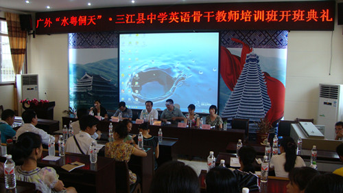 出席该开幕式的有三江县教育局副局长龙怀益,三江中学校长李吉祥、副校长石少明,广外教育学院教师苏春、周洁以及参与培训的教师和广外的助教们。