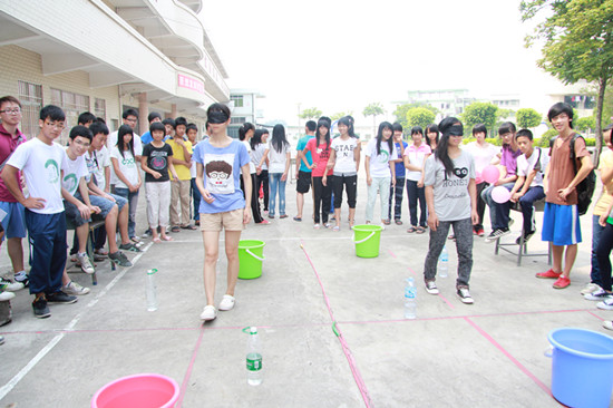 在最后的瞎子走路游戏中,更是考验同学之间,同学和队员之间的默契,可能由于地方口音的不同,一些指令性的语言使得组员沟通起来比较困难,但是最终游戏还是能顺利完成。