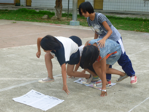 三人四足的参赛队伍都是由师生共同参加,老师的位置在中间,发挥控制整个队伍的作用。“一二一,左右左”整齐的步伐,快速的前进,交流与合作是完成项目最需要的地方。跌倒了,没关系,爬起来继续前进,师生关系在完成项目的过程中进一步升华。