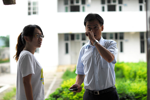 魏传文向队长叶敏琦了解队员住宿情况