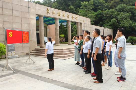 教工党员一行首先参观了东江纵队纪念馆。馆内以大量的文献资料、真实的历史照片及珍贵的革命文物为展览内容,反映了东江纵队的革命事迹。东江纵队是中国共产党在广东省东江地区创建和领导的一支人民抗日军队,是开辟华南敌后战场,坚持华南抗战的主要武装力量,在坚苦卓绝的抗战斗争中,东江纵队培养塑造了伟大的“东纵精神”。为铭记为民族独立和人民解放事业贡献了青春和热血的革命先辈,为提醒自身作为党员而肩负的责任,在郝建萍的领誓下,教工党员面对党旗重温入党誓词。党员们表示今后他们会秉承革命先烈坚定的理想信念和对党无比忠诚的革命精神,在新时代新征程中展现新作为、作出新贡献,为高校教育事业贡献自己的力量。
