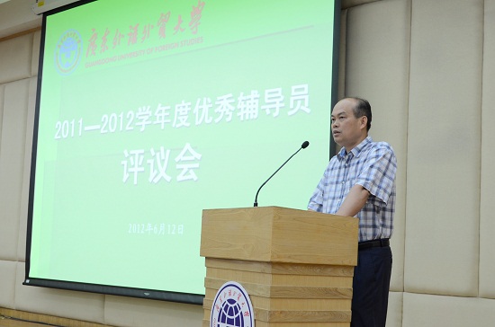本网讯 6月12日下午,2011-2012学年度优秀辅导员评议会在北校图书馆负一层多功能报告厅举行。我校党委副书记卢景辉,学生处处长植秀聪,校团委书记谢秀兰,就业指导中心主任赵烨,学风校风督导蒙德红,各学院分管学生工作负责人、全体辅导员及学生代表出席了本次会议。会议由植秀聪主持。