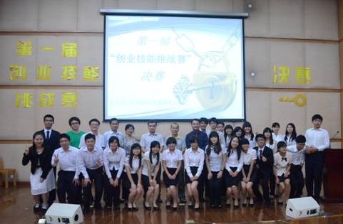 活动紧锣密鼓地进行着,决赛当晚,台上有经过两轮考验的8支参赛队伍,台下有丰富创业指导经历的专家老师、成功创业者以及创业实体负责人,各参赛队伍展现了创业的火花和思维的碰撞。最终,“狂飞荡世”队凭借出色的表现一举摘得第一届创业技能挑战赛的桂冠。