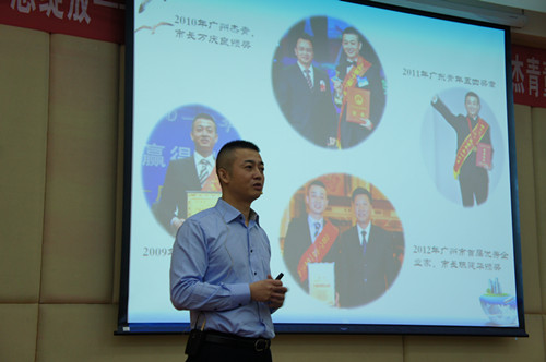 本网讯 5月20日上午,由共青团广州市委主办、广东外语外贸大学承办的“青春飞扬梦想绽放——‘圆梦计划•广外100’ 人生导师、广州市杰青董靖先生讲座”在北校区图书馆报告厅举行。主讲人董靖带来了题为《人生经历,创业经历,人生感悟,交流理想》的讲座。 来自我校 “圆梦计划•广外100”学员、“青马工程·广外100”云山骨干培训班学员及各学院学生,共约两百人参加了此次讲座。副校长何传添、校团委书记谢秀兰、继教(公开)学院党委书记庄典洲等出席了本次活动。