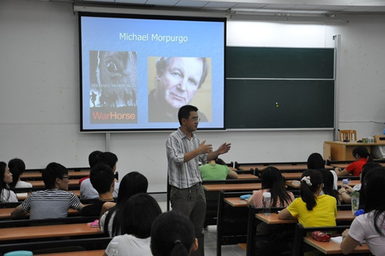 本网讯 5月21日晚上7点在大学城校区F514全校各个专业的师生齐聚一堂,观赏好莱坞大片《战马》(“War Horse”)。英语电影欣赏作为广东外语外贸大学大学英语文化活动月的首场活动,拉开了大学英语文化月活动的序幕。活动由英语教育学院的陈金诗博士主持,张骏宇老师讲解了电影的背景。熊涛博士参加了这次活动。