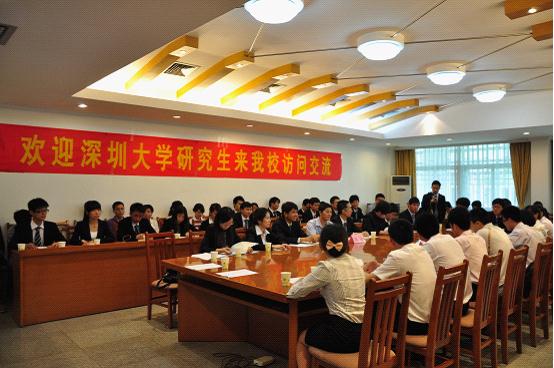 袁傲介绍了深圳大学的校史沿革情况、研究生教育规模现状以及深圳大学“视野开阔,注重实际,热衷创新,崇尚竞争”的人才培养特色。他还特别强调,此行主要目的是加强双方合作交流,增强友谊,并希望通过分享组织工作经验,提高研究生组织工作水平。