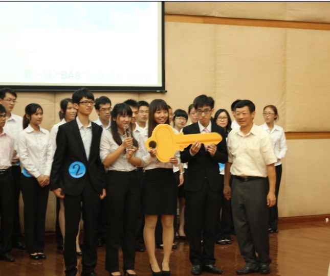 本网讯 5月17日,我校首届BAB创业项目竞投会决赛在南校图书馆报告厅隆重举行。“M方工作室”凭借其“创意、公益、设计”的理念勇夺一等奖、最佳人气奖及直接进驻南校区学生创业实践基地三项大奖。