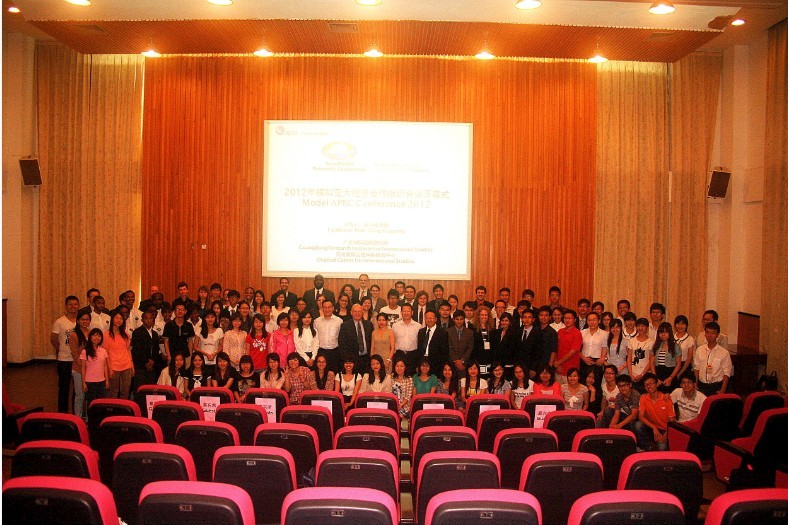 本网讯 5月21日晚,由我校广东国际战略研究院与美国奥斯古德国际研究中心联合举办的2012年模拟亚太经济合作组织会议(Model APEC Conference 2012)在我校南校区学术交流中心酒店第一会议室正式开幕。由来自美国和中国的120名代表齐聚我校,共襄盛举。