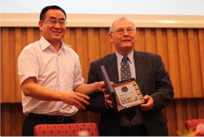 在致辞后,副校长顾也力代表学校赠与Shelton Williams教授礼物以表达谢意及对本次会议愉快合作的展望。