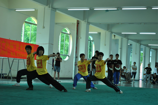 上午的比赛分别有男女个人南拳和集体拳。男女个人南拳比赛中,参赛选手们用力度和专注展现了南拳的威猛迅疾。11级国际学院的林志浩的南枝拳打得迅猛有力,获得了男子南拳的第一名;而女子组的第一名——09级信息学院郑欣欣一套倒节打出的骇人气势堪比男子。而接下来进行的集体项目当属竞争最激烈的项目了,各个学院一共派出了22支队伍,分别穿上了统一的服装,动作整齐划一,气势十足。而身穿带有“管院腾飞”字样的两支管院代表队,分别以一套“少林十八手”以及“集体四步拳”获得了集体项目中的一、二名。