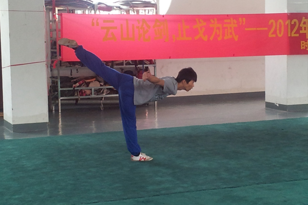 本网讯 2012年5月5日,由广东外语外贸大学体育运动委员会主办,体育部承办,广袤园武术协会协办的广外杯武术锦标赛在广外北校区体育部二楼大厅举行,一群来自广外南北校区热爱武术的学子演绎了一场“云山论剑,止戈为武”的武术盛宴,参赛选手们在体育部二楼的绿地毯上充分展示了自己的武术才华。