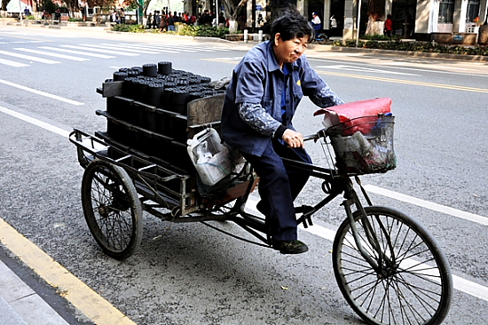 运煤炭的师傅迎“坡”而上