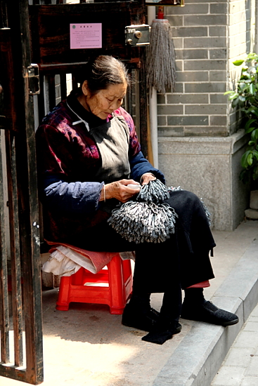 老婆婆正制作着地拖