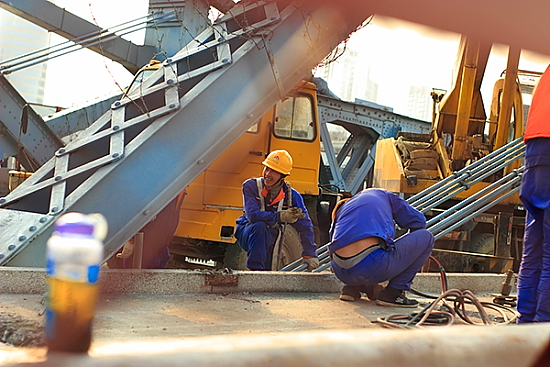 晨光中,工人就开始施工了