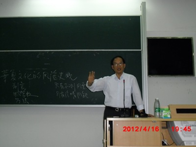 本网讯 2012年4月16日,应我校风险管理与保险学系的邀请,台湾逢甲大学风险管理与保险学系主任陈森松教授来访广外,并于当天晚上在南校区教学楼F315为广大同学奉献了一场题为“华夏民族的风险史观”的精彩讲座,讲座由风险管理与保险学系主任展凯主持。