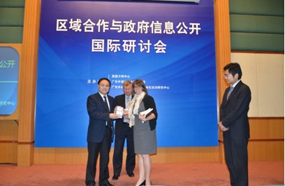 本网讯 2012年 4月11日,由美国卡特中心、广东外语外贸大学法学院、广东外语外贸大学区域一体化法治研究中心联合主办的“区域合作与政府信息公开”国际研讨会在我校北校区行政楼国际会议厅召开。 我校副校长石佑启教授出席会议并致辞。