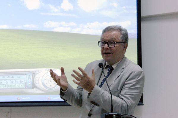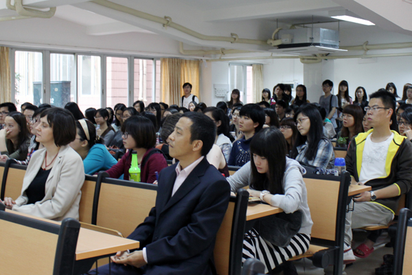 本网讯 4月5日下午,波兰杰出导演克里日托夫•扎努西(Krzysztof Zanussi)出现在广外北校区,在7教110报告厅开展了关于波兰电影的讲座。波兰驻广州领事阿格塔(Agata Domanska)、外籍教师Duncan和Matt Horn、英文学院副院长胡正茂和文化系主任彭保良出席了该讲座。