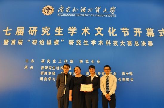 在“研论纵横”研究生学术科技大赛总决赛中,共有六支队伍争夺桂冠。比赛伊始,各参赛代表就“方舟子打假”进行了一番激烈的热身讨论。此后,来自经贸学院的柯学良和杨军就居民消费最大化和收入最优差距的研究进行了展示。论文应用了MatLab和Eviews对数据做了定量分析,并得出应以提高低收入人群的收入为主,控制高收入人群的收入为辅的解决方法。而来自翻译学院的“译海扬帆”队则以“中外高校网页英文简介的语篇双视角对比研究”为课题,向师生展示了中外高校英文网页上的不同。通过南开大学和澳大利亚国立大学的对比,指出了我国高校翻译时在时态和人称上与外国高校的区别。论文的撰写中运用了我校杜金榜老师语篇树状信息结构研究的方法,让研究更加高效、便捷又不失逻辑性地开展,真正做到了活学活用,从而使其在六支队伍中脱颖而出,最后摘得比赛桂冠。