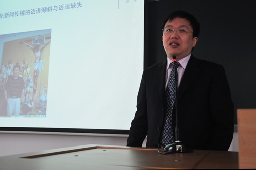 当天的讲座主要深入探讨三个问题:跨文化新闻传播的话语倾斜与话语缺失是如何呈现的?为什么会在跨文化表达尤其是跨文化新闻传播中频繁出现?什么才是合乎跨文化理性的新闻传播?单波开篇以拉萨3·14骚乱事件为例,阐述中西方记者对西藏文化都未深入了解,以媒体对藏文化的片面理解报道事实,以自我想象他者,在报道中都存在话语倾斜与话语缺失。那么,何为话语倾斜?何为话语缺失?单波解释道,“话语倾斜即整个话语和文本向某种言谈方式和话题倾斜。而话语缺失就是为了使文化意义可理解,合乎某种表达逻辑,排除了事物的某些特定层面来谈论一个话题。”