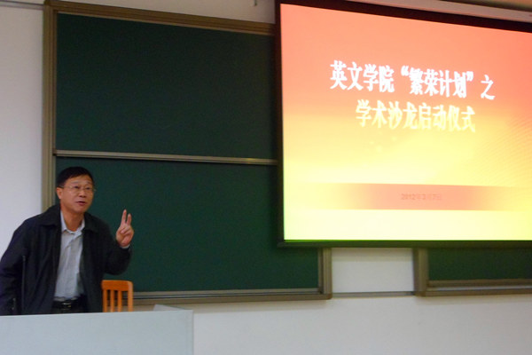 本网讯 3月7日下午,英文学院“繁荣计划”之“周三学术沙龙”启动仪式在北校区七教举行。我校校党委副书记陈建平及英文学院全体教职工出席了启动仪式。