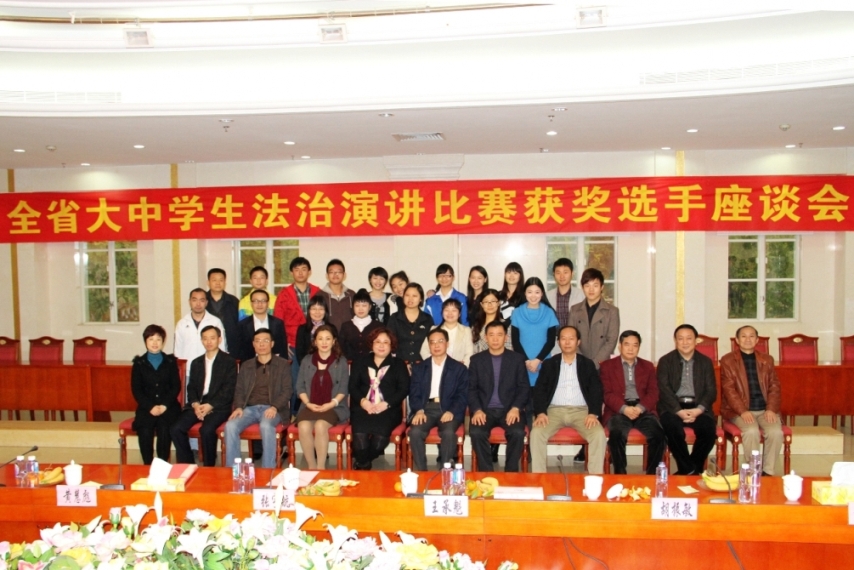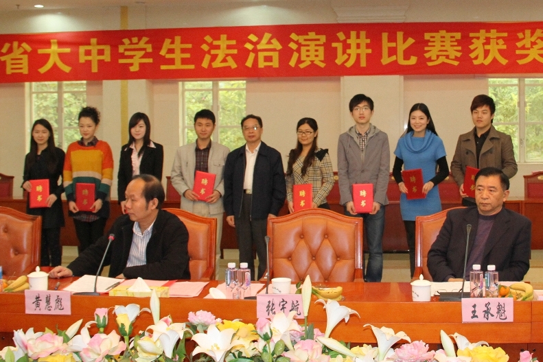 本网讯 3月3日下午,为推动青少年学法、守法、用法系列活动持续深入开展,省依法治省办、省教育厅省司法厅在南方医科大学举办了全省大中学生法治演讲比赛获奖选手座谈会,7名指导老师、12名获奖选手及2名主持人被分别授予“校园法治文化宣传使者”称号,我校获奖选手政管学院10级杜静,优秀主持人新闻学院08级王蕙仪和09级钟政轩获此称号。