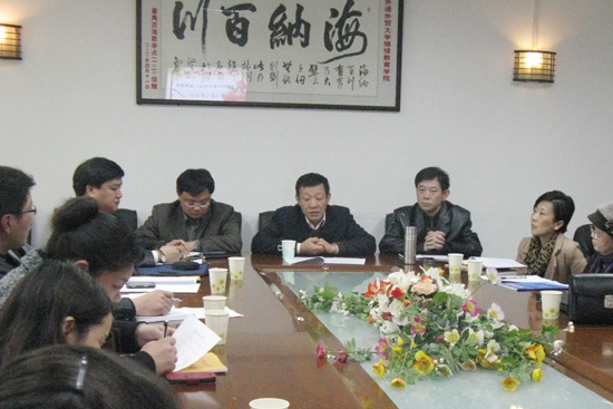 本网讯 2012年1月10日至11日,我校成人高等教育第七届工作会议在北校区第二教学楼207会议室召开。校党委副书记许国彬,继续教育(公开)学院院长何勇斌、党委书记庄典洲及成教各教学点负责人参加了会议。庄典洲、何勇斌先后主持了会议。