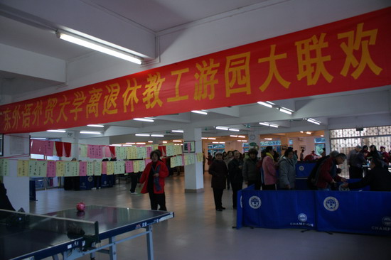本网讯 2012年1月5日上午,尽管天气寒冷,不少离退休老同志还是三五成群、兴致勃勃地到北校区教工活动中心四楼,参加离退处举办的“广东外语外贸大学离退休教工游园大联欢”活动。参加游园活动的有住在校内和广州各个点的离退休教工共200多人。幸运大转盘、门球射门、吊瓶、一口气、飞镖、猜谜、青蛙跳水等传统项目,吸引了不少老同志,新增加的“盲人敲锣”也弄得大家捧腹大笑。游园现场喜气洋洋,老同志还纷纷相互拜年道喜,互相祝愿身体健康长寿。言语间感谢学校的关怀,更欣慰于学校的快速发展。两个多小时的游园活动其乐融融。