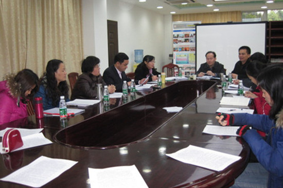 本网讯 1月5日,英语教育学院在北校区第八教学楼412会议室召开学习“哲学社会科学繁荣计划”工作研讨会,集中学习党中央、教育部以及学校关于推进哲学社会科学繁荣发展的相关文件精神,认真研讨英语教育学院的发展定位、特色和未来。参加人员有学院全体领导、正教授、系部主任、研究中心主任和教研室主任。学校科研处阳爱民处长应邀出席了会议。研讨会由英语教育学院党委书记林绍雄主持。