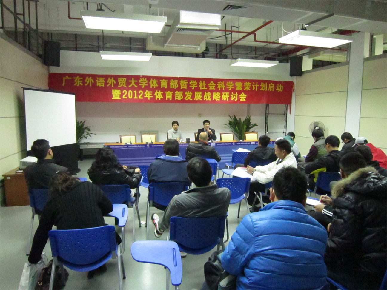 本网讯 1月4日下午,体育部哲学社会科学繁荣计划启动暨2012年体育发展战略研讨会在南校区体育馆新闻发布厅顺利召开。体育部全体在编教职工和非编人员代表参加了本次研讨会,会议由体育部党总支书记李旭武主持。