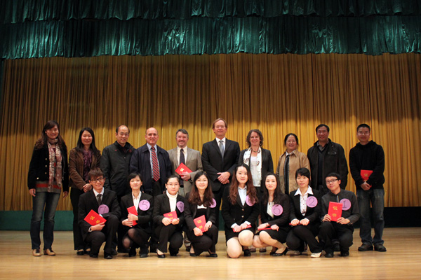12月19日晚,英文学院第18届口译大赛在六教报告厅隆重上演。反方译员谢庭贞夺冠。出席本次比赛的嘉宾有英文学院院长温宾利、副院长胡正茂、党委副书记周秀娇。评委由英文学院副院长余盛明、王桂珍教授、黄跃文教授、英语教学部副主任许勉君、王蕴峰博士和朱珠老师共同担任。