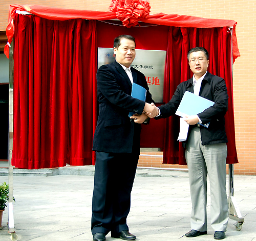 发言结束后,双方领导代表李和民和闫斌共同为“社会实践基地”揭牌,在师生代表的热烈掌声之中,相互交换协议书。