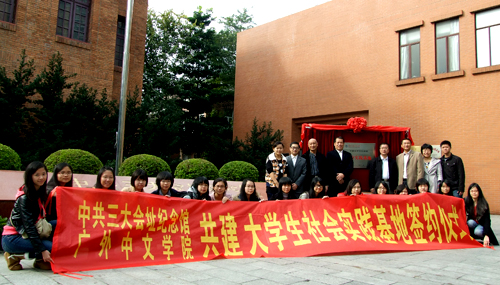 本网讯 12月15日上午,由中文学院和中共三大会址纪念馆共同主办的“共建大学生社会实践基地”签约仪式在三大会址隆重举行。广州农讲所纪念馆副馆长闫斌、中共三大会址纪念馆管理部主任荆永才、副主任黄志坚代表三大会址纪念馆出席仪式。中文学院党委书记李和民、党委副书记李江等、中文学院部分辅导员以及部分学生代表也参加了此次活动。