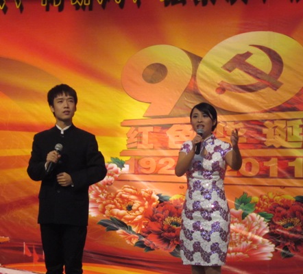 我校另一组选手由来自商英学院的李帅和朱丹琳组成,他们朗诵的题目是《祖国颂》,选手默契的配合和恰到好处的情感抒发,引起了观众们的共鸣。