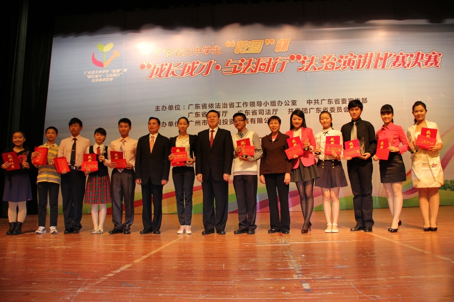 本网讯 12月6日晚上,经过初赛、复赛的激烈角逐,以“成长成才•与法同行”为主题的全省大中学生“乾图”杯法治演讲比赛决赛在广州珠江宾馆会议中心顺利举行。我校选手政管学院10级学生杜静以总分第四的成绩获得大学组三等奖。