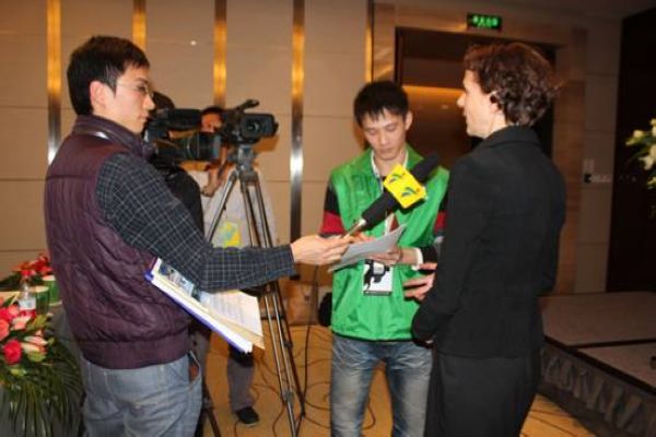 8日下午,志愿者们一对一陪同15名国际知名设计师来到广交会威斯汀酒店为设计周媒体见面会提供相关的口译服务。为了更好地完成工作,志愿者们提前做了充分的准备。在现场采访这个环节中,志愿者们用流利的英语为到场的的媒体记者及外国友人传递信息。