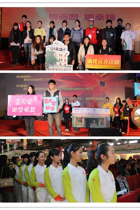 省委宣传部副部长、省文明办主任顾作义,广州市委常委、组织部部长方旋、团省委副书记、省志愿者联合会会长曾颖如,共青团广州市委书记魏国华等领导与近千名来自全省各地各领域的志愿者共同欢庆志愿者的节日。我校团委书记谢秀兰、校团委青年志愿者行动指导中心主任余海波率队参加了志愿服务广交会。本次活动,我校作为唯一参与开幕式表演的高校,共派出85名演员志愿者和15名礼仪志愿者,同时我校还有四个志愿服务项目入选了参展项目。